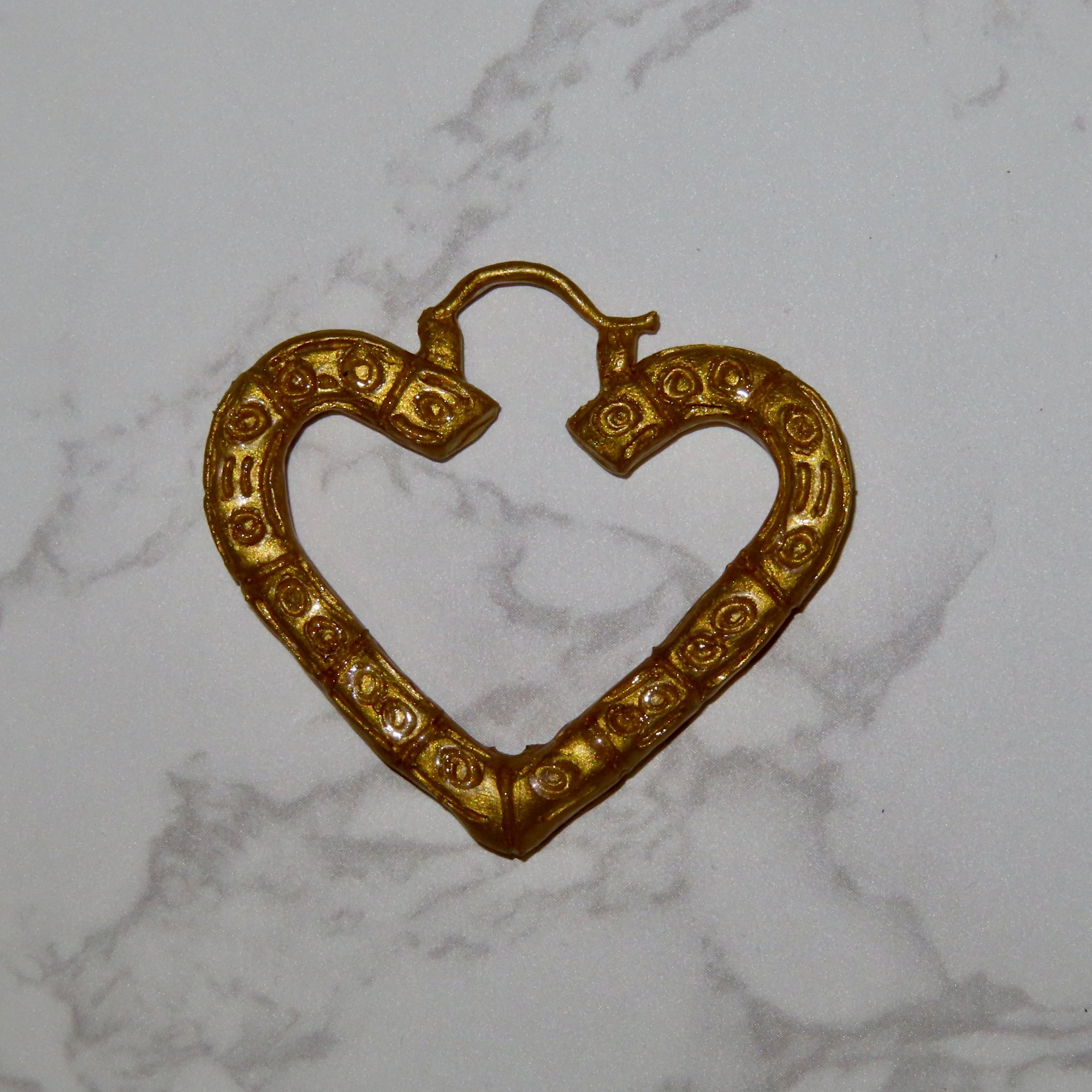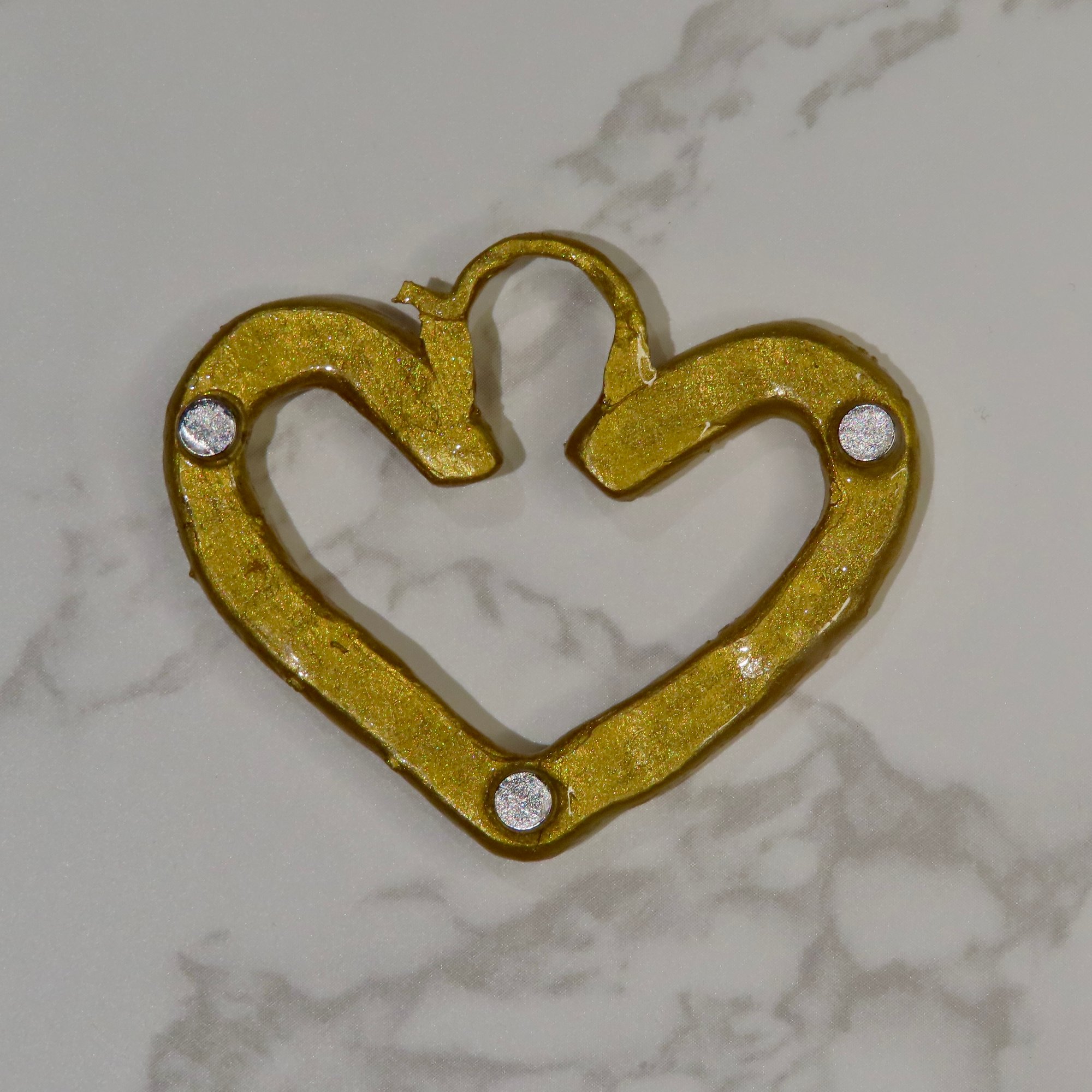 Add a shiny touch to your space with this heart-shaped bamboo earring fridge magnet. Made from polymer clay with a stunning gold finish and backed with industrial-grade magnets for a secure hold. Perfect for enhancing your kitchen, office, or as a unique gift for any occasion.